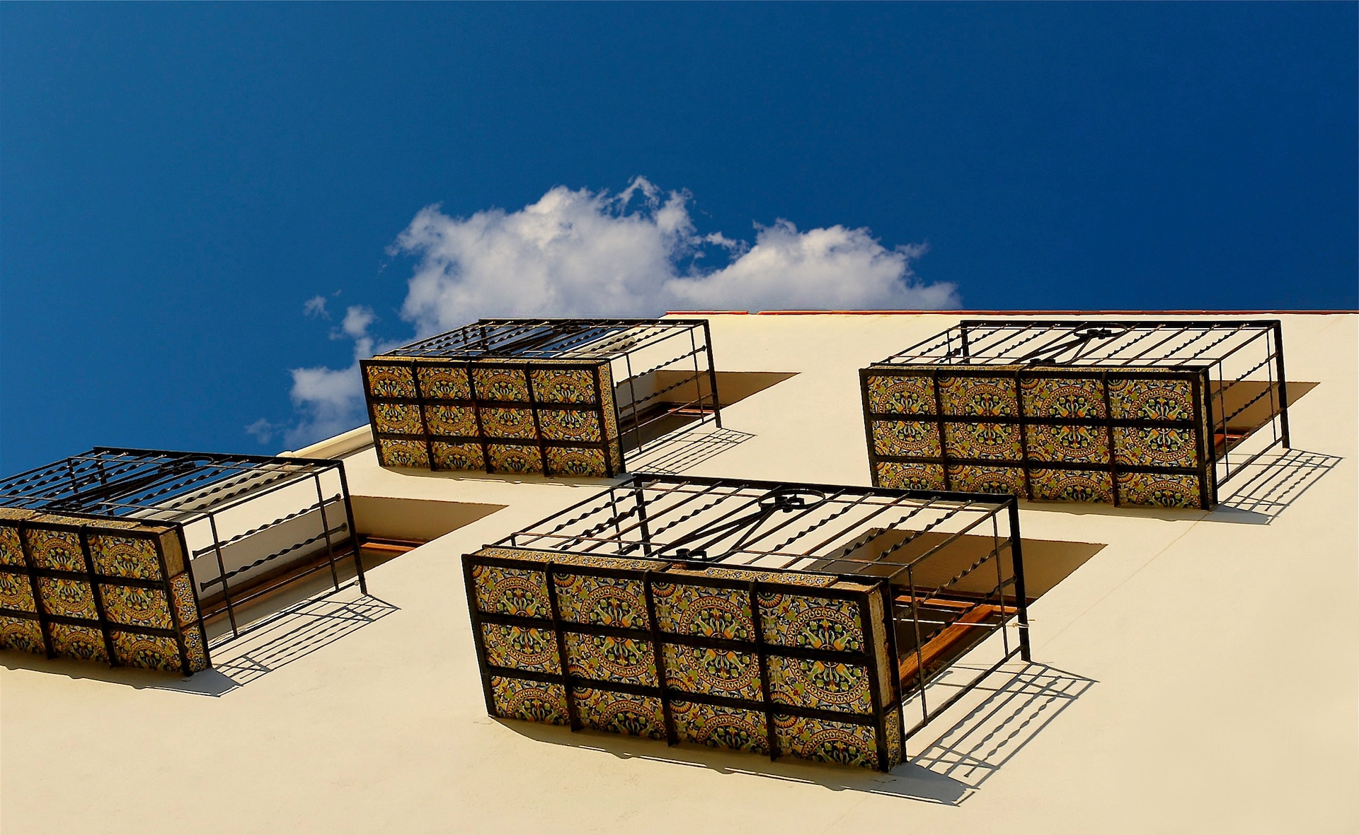 Azulejos sous les balcons dans une rue à Cadaquès: Issu du mot arabe al-zuleij, qui